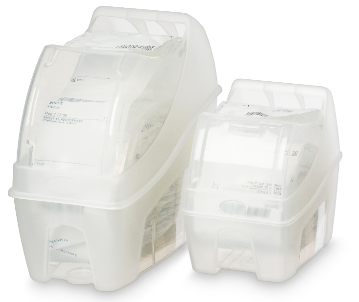 De Medicatierol is bijzonder praktisch in het gebruik. Om de rol opgeruimd te bewaren en eenvoudig een zakje af te scheuren, heeft diverse oplossingen in het assortiment, we noemen dit secundaire verpakkingen. Het is ook mogelijk de Medicatierol los te verkrijgen.