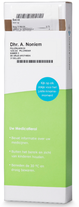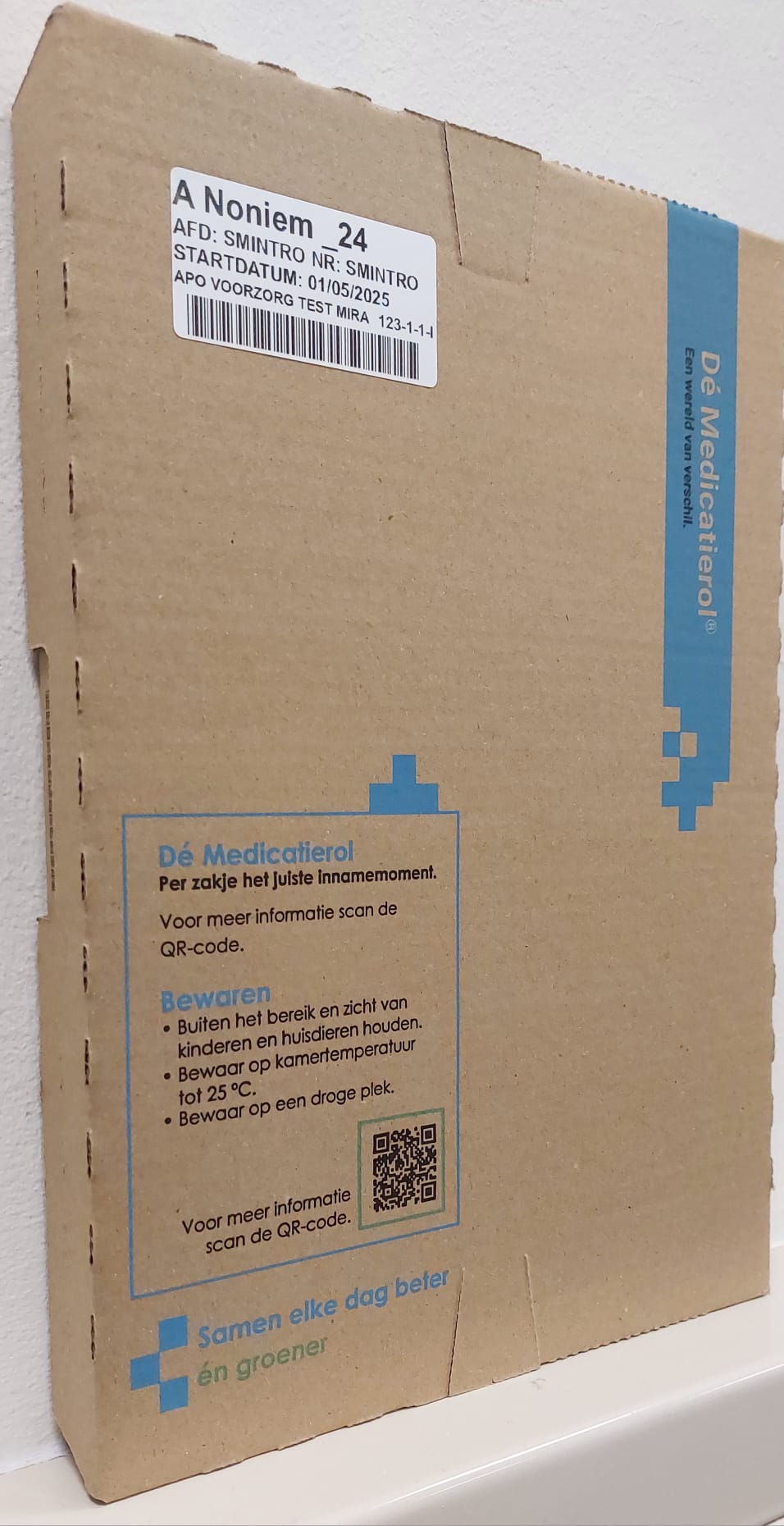 Verpak de Medicatierol in een handige brievenbus verpakking. Dit is vooral makkelijk wanneer je veel bezorgt. Vergeet de brievenbusverklaring niet voor de patiënten. Het aantal zakjes dat in een verpakking past is mede afhankelijk van het aantal geneesmiddelen en de grootte van de geneesmiddelen in de zakjes.