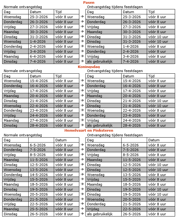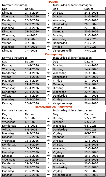 Aan- en afleverdata rond feestdagen in het voorjaar 20262026-02-16